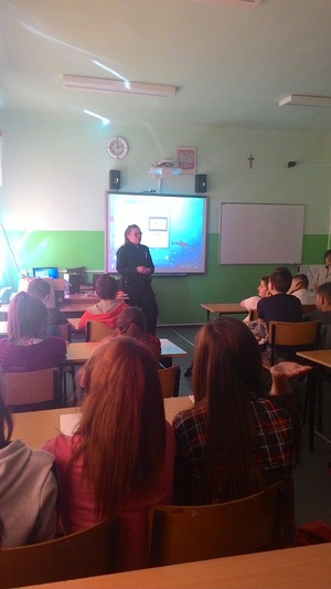 Podczas prowadzonych działań profilaktycznych dzielnicowa st.sierż. Katarzyna Czesna spotkała się z uczniami Zespołu Szkół we Włostowie. Prowadząc spotkania z młodszymi dziećmi rozmawiała i uczyła je jak prawidłowo zachowywać się na drodze być widocznym i nosić odblaski. Natomiast na spotkaniu z młodzieżą gimnazjalną przekazywała informacje dotyczące odpowiedzialności prawnej oraz o szkodliwości zażywania substancji psychoaktywnych.