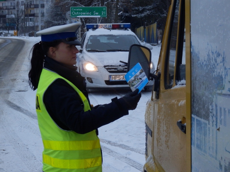 Policjanci Ruchu Drogowego opatowskiej komendy przeprowadzili akcję, podczas której wręczali kierowcom naklejki i broszury informacyjne dotyczące właściwych zachowań na drodze.