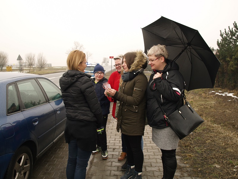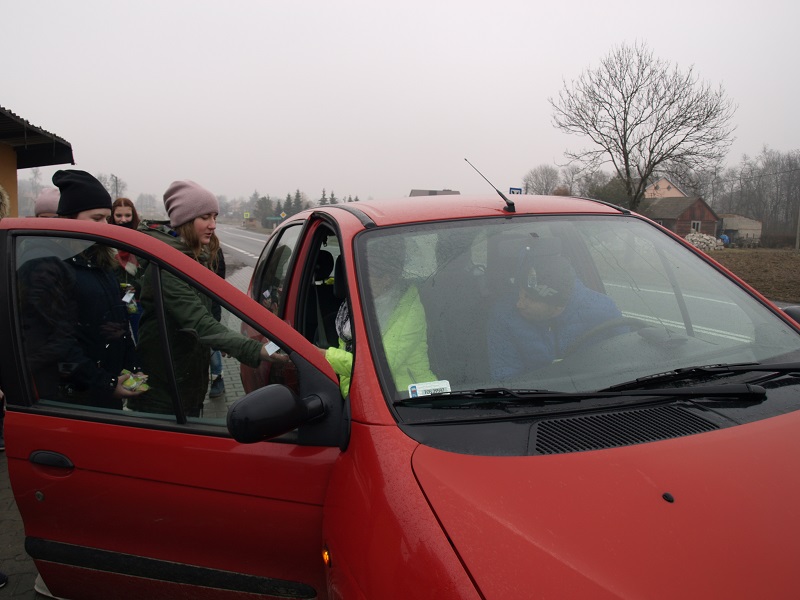 Dziś do patrolu policjantów ruchu drogowego przyłączyli się uczniowie ze Szkoły Podstawowej w Sadowiu. Dzieci, w nagrodę za wzorową postawę za kierownicą nagradzały kontrolowanych, zaś za drobne przewinienia wręczały gałązkę bazi.