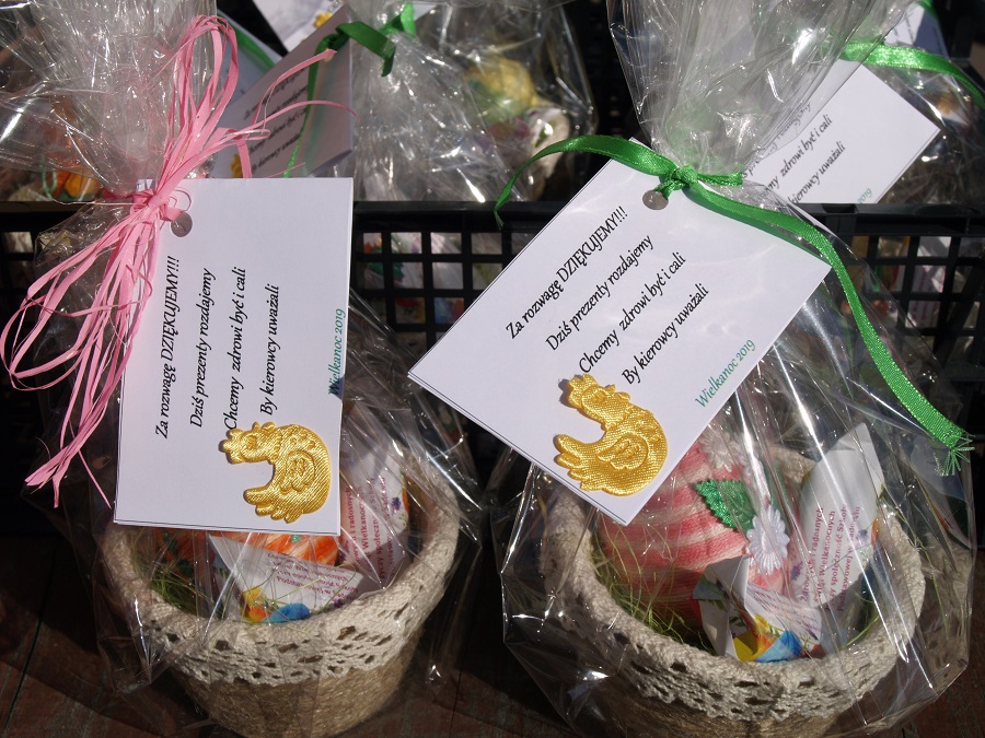 Wzorowi kierowcy otrzymywali wykonane przez dzieci upominki nawiązujące w swej tematyce do Świat Wielkiej Nocy. Natomiast kierowcy którzy dopuścili się drobnych wykroczeń, otrzymywali od dzieci przygotowane przez nie bazie z wierszykiem ostrzegającym kierowców.