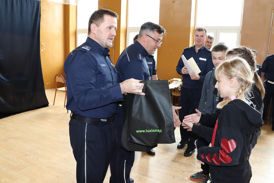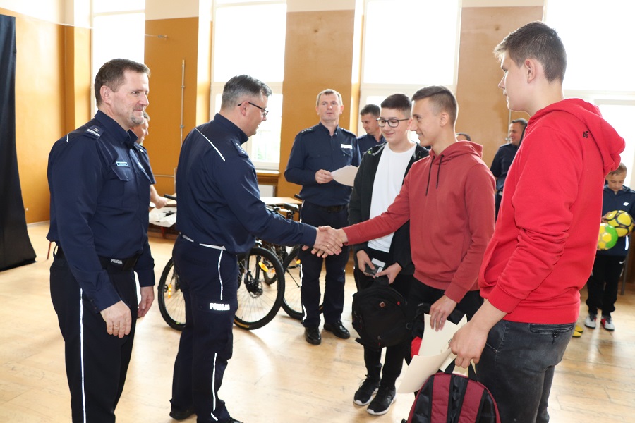 Zwycięskie drużyny otrzymały dyplomy i cenne nagrody ufundowane przez sponsorów. Nagrody wręczyli: Zastępca Komendanta Powiatowego Policji w Opatowie mł. insp. Andrzej Skowroński, Naczelnik Wydziału Ruchu Drogowego KWP w Kielcach nadkom. Tomasz Janik oraz Naczelnik Wydziału Ruchu Drogowego KPP w Opatowie kom. Andrzej Kolera.