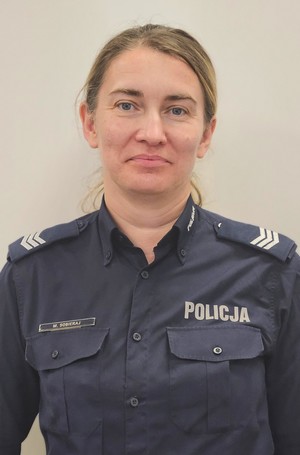 sierż. sztab. Małgorzata Sobieraj pracuje w Komisariacie Policji w Ożarowie pok. nr 15